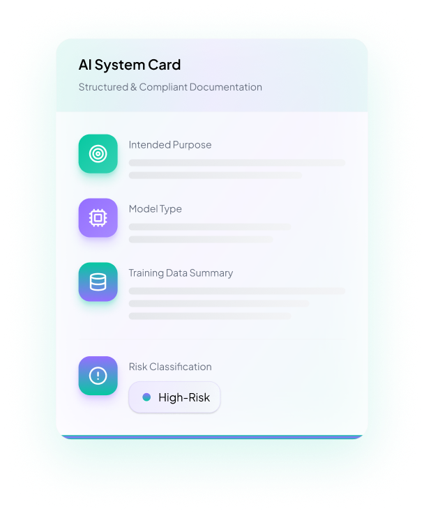 Classify your AI systems, document governance, and manage risks throughout the entire AI lifecycle